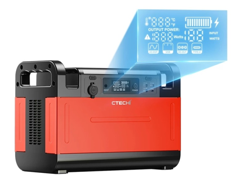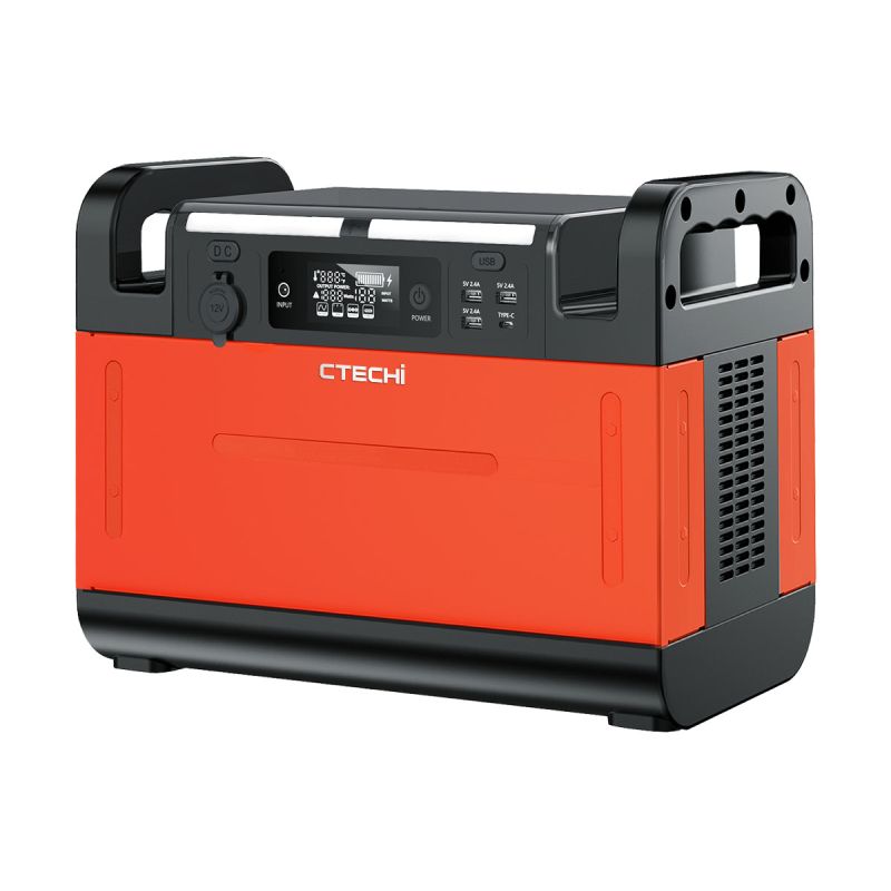 Портативный источник питания CTECHi GT1500 Portable Power Station 378.000 мАч — это портативная аккумуляторная электростанция мощностью 1500 Вт / 1210Вт*ч, имеющая 2 Евро-розетки (чистого синусоидального напряжения) переменного тока, 1 выходной порт постоянного тока, 3 порта USB-A, 1 порт Type-С , и может придавать энергию на 9 устройств одновременно. Каждый выход оснащен оснащенным выключателем.