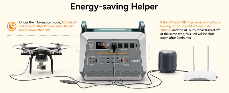 Инверторы с чистой синусоидальной волной необходимы для обеспечения непрерывности питания, стабильности и защиты от помех. Таким образом ST2000 со встроенным инвертором переменного тока мощностью 2000 Вт может обеспечить очень стабильную форму сигнала и подходит для использования с медицинским оборудованием. CTECHi ST2000 — это компактное устройство с 15 разными выходными портами, включая 6 портов USB (2*USB-A и 4*USB-A QC3.0), 2 порта Type-C PD, 2 розетки переменного тока, 1 порт CIG и 4 выхода постоянного тока.