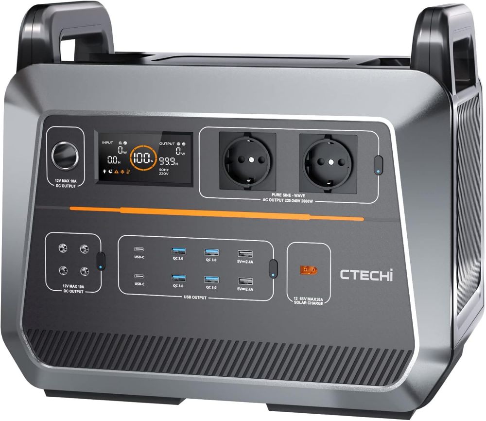 Портативный источник питания CTECHi ST2000 Portable Power Station емкостью 648.000 мАч — это портативная аккумуляторная электростанция мощностью 2000 Вт / 2073 Вт*ч с литий-железофосфатной батареей LiFePO4. Благодаря функции быстрой зарядки его можно зарядить до 80% менее чем через час. CTECHi ST2000 также имеет несколько вариантов подзарядки. Кроме того, зарядка возможна где угодно с многофункциональным входом питания. Он поддерживает одноразовую зарядку и разрядку, что означает, что вы можете использовать его во время зарядки. Батареи LiFePO4 имеют гораздо более стабильную внутреннюю структуру, менее подвержены разложению при высоких температурах, имеют лучшую устойчивость к перезаряду и менее подвержены короткому замыканию. Кроме того, встроенный LiFePO4 оснащен передовой системой управления батареей и огнеупорными материалами для обеспечения длительного срока службы, а также безопасности при поддержке нескольких электрических устройств.