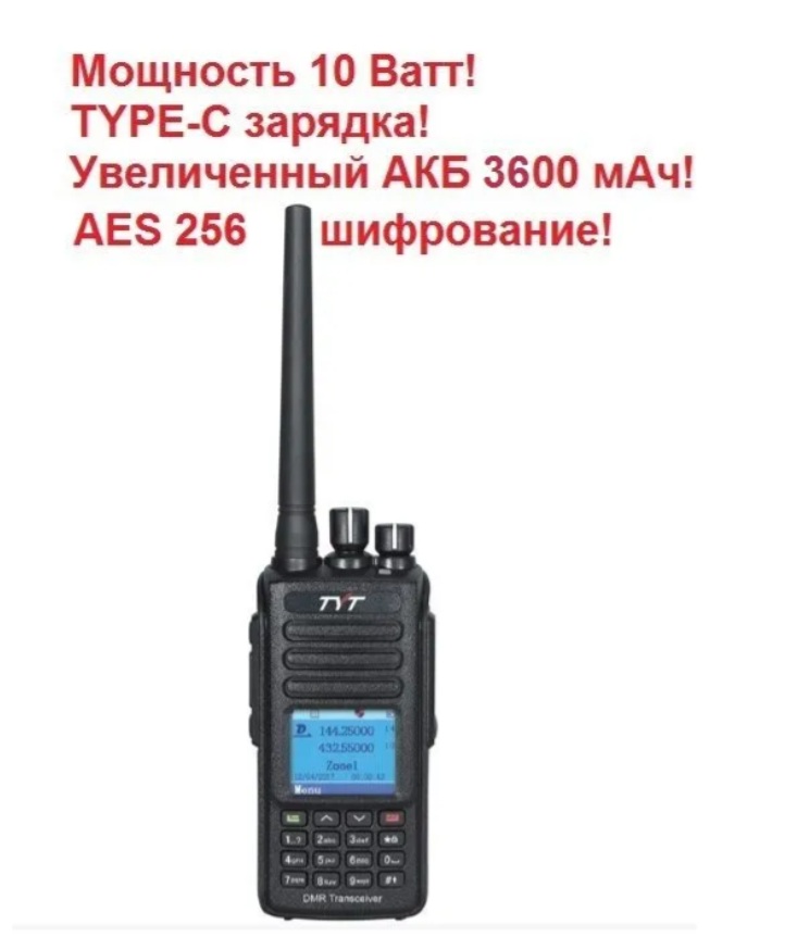 Обновленная версия популярной модели рации TYT MD-UV390 DMR AES 256 ip67, дополненная возможностью зарядки через разъем TYPE-C, а так же увеличенная емкость аккумулятора до 2800 мАч! Мощность данной модели 10 Ватт!!!